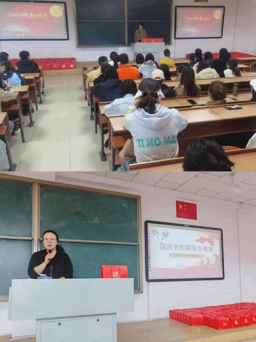 通拉嘎老师就大家双节期间的安全问题进行了强调。她提醒同学们外出要及时告知家长,在学校做好去向登记,时刻保持与班主任、家人、朋友的联系,及时汇报自己的位置与安全。尽量不要单独行动,不轻信陌生人,谨防上当受骗。