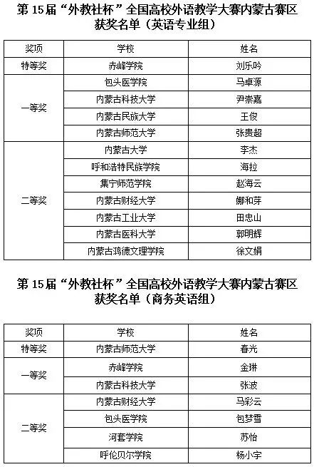 开赛以来,taptap点点taptap点点体育精心组织,参赛选手认真准备,经过复赛和决赛,第十五届“外教社杯”全国高校外语教学大赛(外语类专业组)内蒙古赛区区赛圆满落幕。经过激烈角逐,评选出各组别特等奖2人、一等奖6人和二等奖11人。赤峰学院刘乐吟老师和taptap点点体育春光老师分别获得英语专业组和商务英语专业组特等奖,将代表内蒙古自治区参加11月在上海举办的全国决赛。