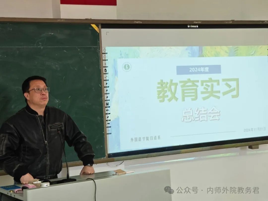 最后,日语系主任傅成浩作了大会总结。祝贺了2021级日语专业实习生圆满完成任务,实现了专业学习和教育实习相统一,希望2022级日语专业同学在教育实习中再创佳绩。