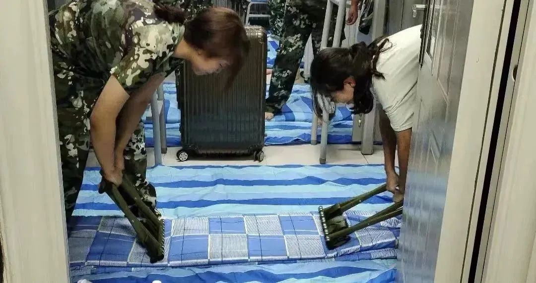 晚上的训练内容是整理内务。新生们学习了如何叠军被、如何把寝室整理的一尘不染,并且按宿舍分成小组学习了唱校歌与军歌。整理内务不仅是为了让环境干净整洁,更是培养我们的秩序意识和责任感。只有将个人的生活习惯与集体生活有机结合起来,我们才能建立一个和谐、有序的集体环境。